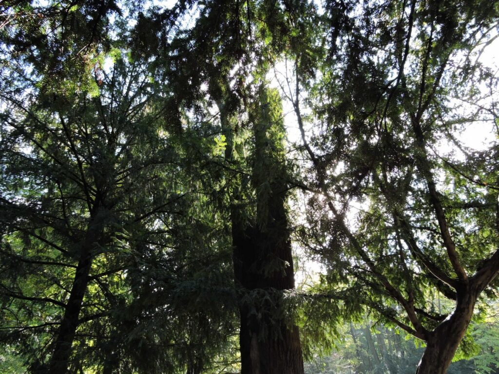 Feng Shui Energieort. Die Äste der hochaufragenden, alten Bäume bilden ein wundervolles Gründach.